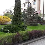Die 1-Zimmer-Ferienwohnung Domola befindet sich im Stadtviertel Przymorze und bietet einen Blick auf den Garten.